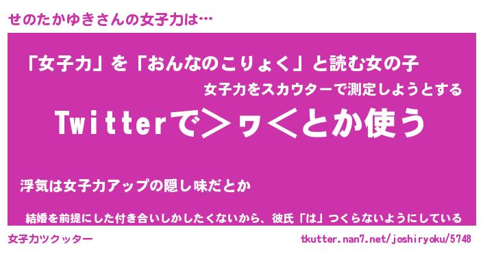 | 女子向けラノベタイトル風あだ名 | 『せのたかゆき姫と円卓の騎士』 |
