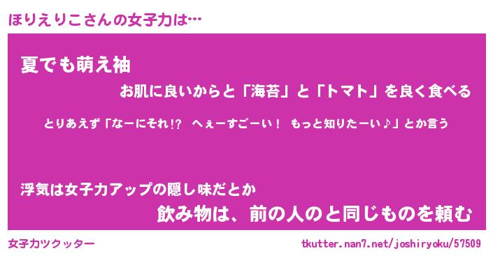 | 恥ずかしいあだ名 | 『プリティーほりえりこ』『ほりっちょ』 |