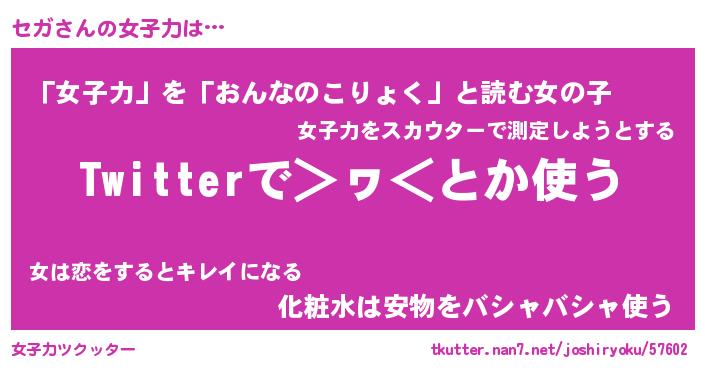 | ポケモン風あだ名 | 『セガチュウ』『セガダネ』『ヒセガ』 |