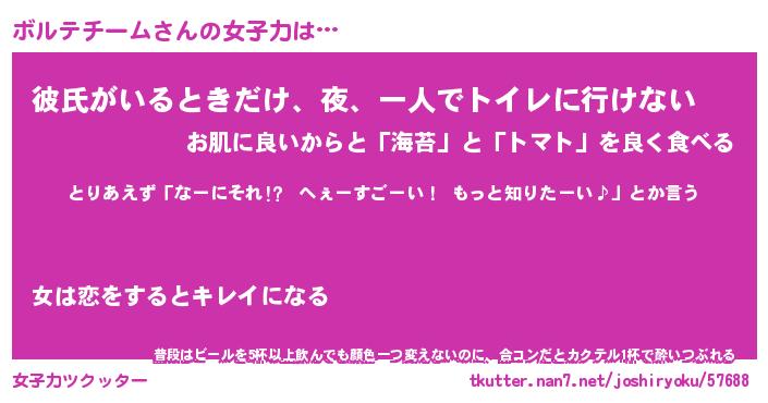 | 恥ずかしいあだ名 | 『プリティーボルテチーム』『ボルっちょ』 |