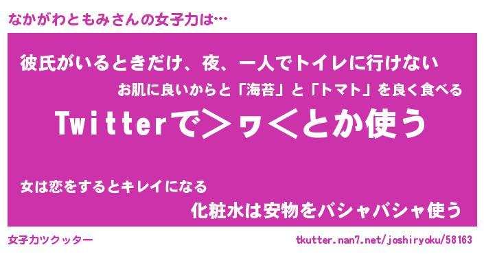 | 恥ずかしいあだ名 | 『プリティーなかがわともみ』『なかちん』 |