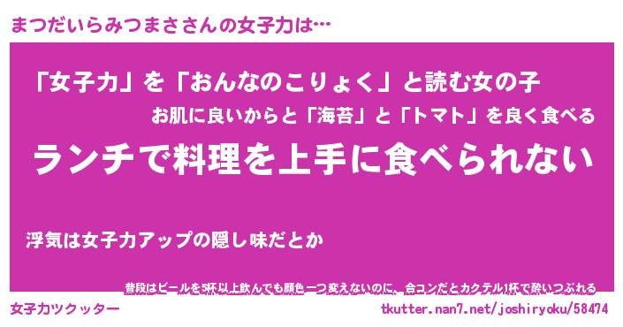 | 肩書あだ名 | 『まつだいらみつまさ社長令嬢』 |