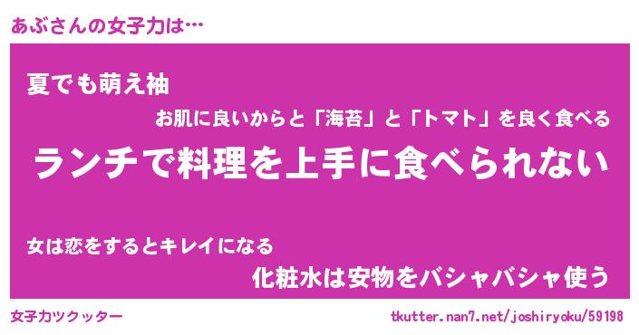 | ヘコむあだ名 | 『あぶもー』『酢こんぶ』『あぶを』 |