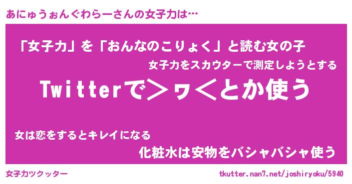 | 男性向けラノベタイトル風あだ名 | 『あにゅうぉんぐわらーの憂鬱』 |