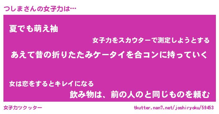 | ヘコむあだ名 | 『つしにゅー』『なまこ酢』 |