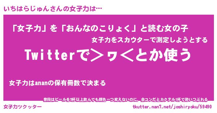 | 恥ずかしいあだ名 | 『プリティーいちはらじゅん』『いちちん』 |