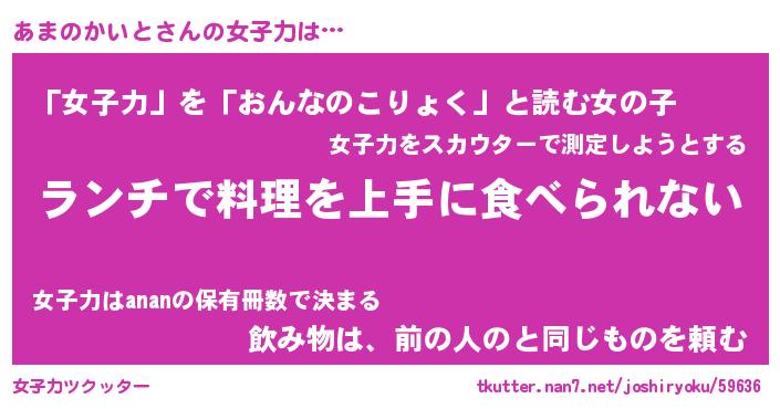 | 男性向けラノベタイトル風あだ名 | 『アマノカイトアートオンライン』 |