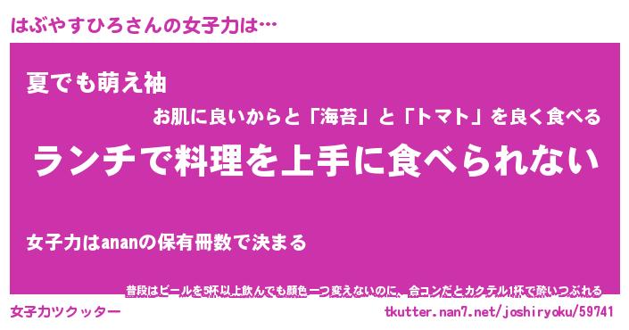 | 肩書あだ名 | 『はぶやすひろ店長』『はぶやすひろ先生』 |