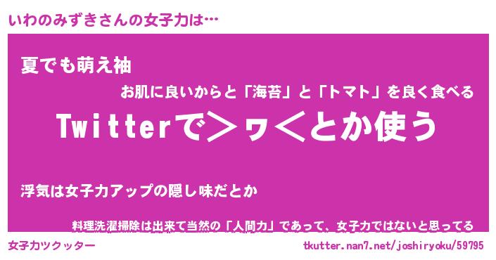 | 恥ずかしいあだ名 | 『プリティーいわのみずき』『いわっちょ』 |