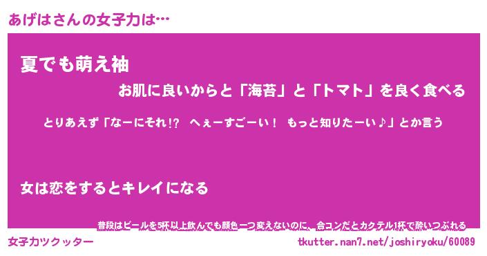 | ファンタジー風あだ名 | 『アゲフェル』『エターナルアゲハー』 |