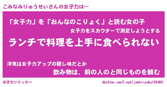 | ヘコむあだ名 | 『こみっふぃ~』『つくし』 |