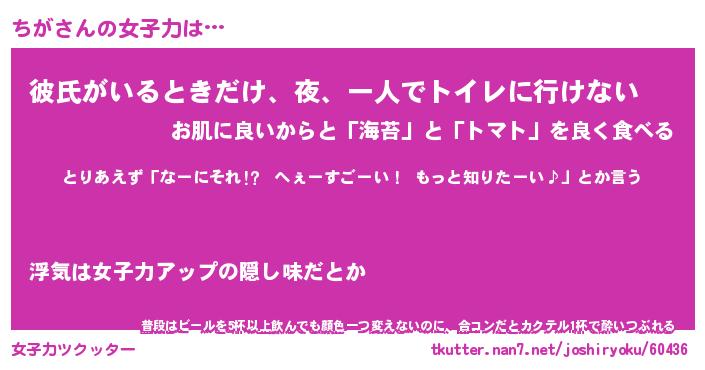 | ヘコむあだ名 | 『ちがもー』『豆乳』『ちがぷりん』 |