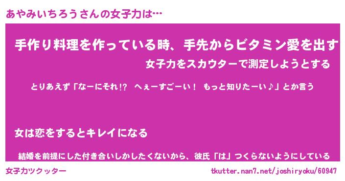 | 恥ずかしいあだ名 | 『プリティーあやみいちろう』『あやちん』 |