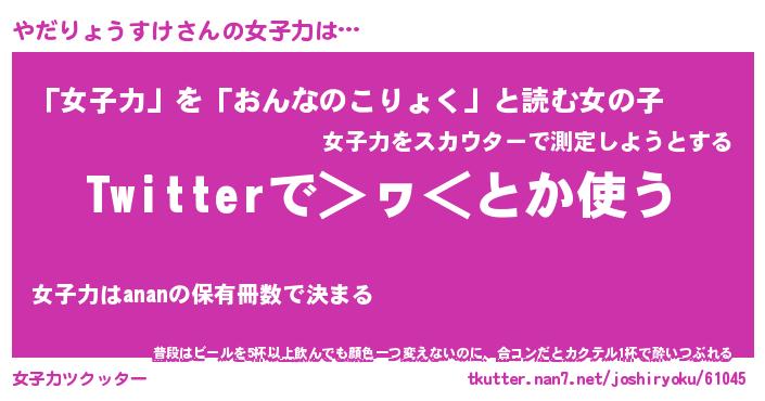 | 男性向けラノベタイトル風あだ名 | 『やだりょうすけの憂鬱』 |