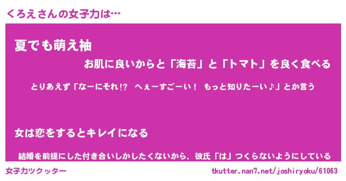 | ヘコむあだ名 | 『くろもー』『酢こんぶ』『くろっ子』 |