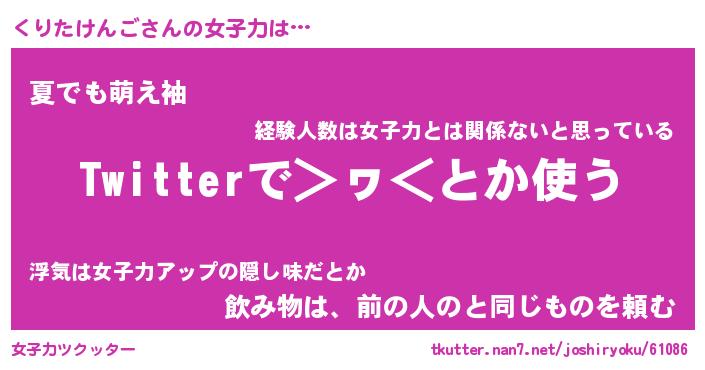 | 肩書あだ名 | 『くりたけんご社長』『くりたけんご班長』 |