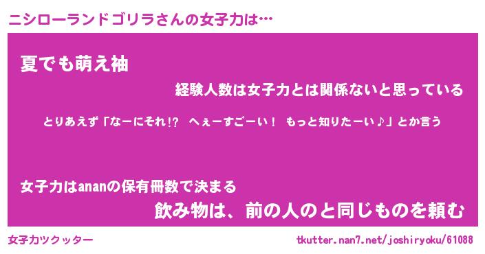 | 料理風あだ名 | 『ネギたっぷりニシローランドゴリラの南蛮漬け』 |