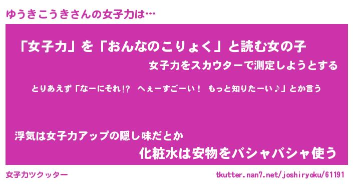 | 恥ずかしいあだ名 | 『プリティーゆうきこうき』『ゆうっちょ』 |