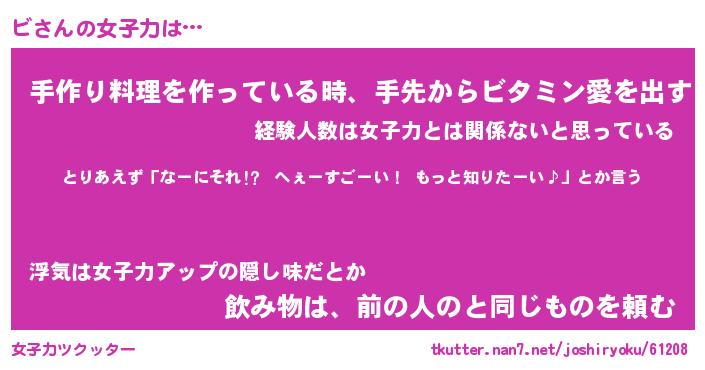 | ヘコむあだ名 | 『ビにゅー』『つくし』『ビっ子』 |