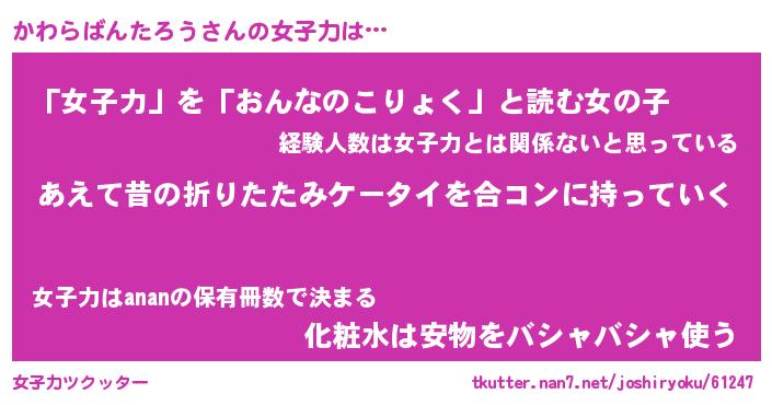 | ヘコむあだ名 | 『かわもー』『つくし』『かわっぺ』 |