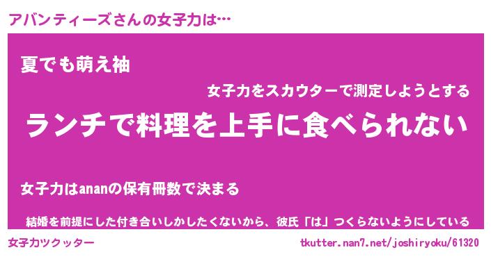 | ヘコむあだ名 | 『アバもー』『なまこ酢』『アバお』 |