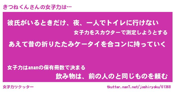 | ヘコむあだ名 | 『きつにー』『なまこ酢』『きつ太郎』 |