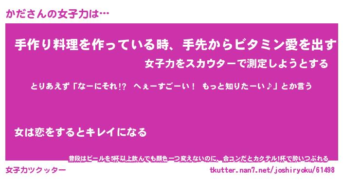 | 恥ずかしいあだ名 | 『プリティーかだ』『かだっちょ』 |