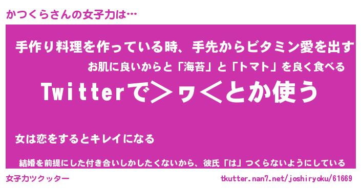 | 恥ずかしいあだ名 | 『プリティーかつくら』『かつっちょ』 |