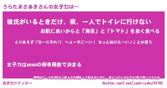| 恥ずかしいあだ名 | 『プリティーうらたまさあき』『うらちん』 |