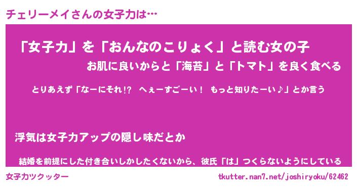 | ヒーロー風カッコイイあだ名 | 『スーパーチェリーメイ』『魔戒騎士チェ』 |