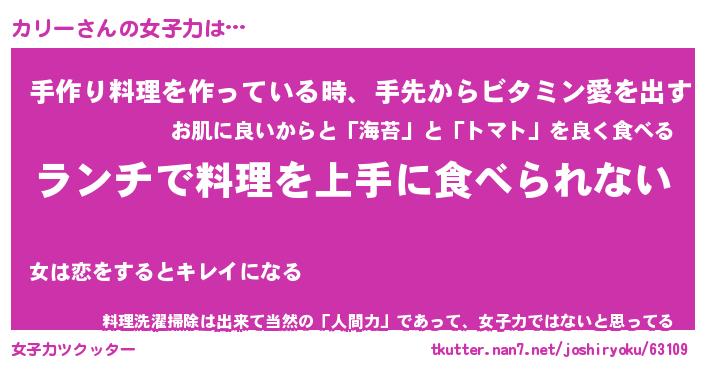 | ヘコむあだ名 | 『カリふぇ~』『つくし』『カリっ子』 |