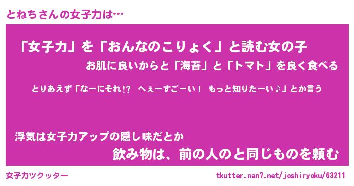 | ポケモン風あだ名 | 『トネチュウ』『トネチダネ』 |