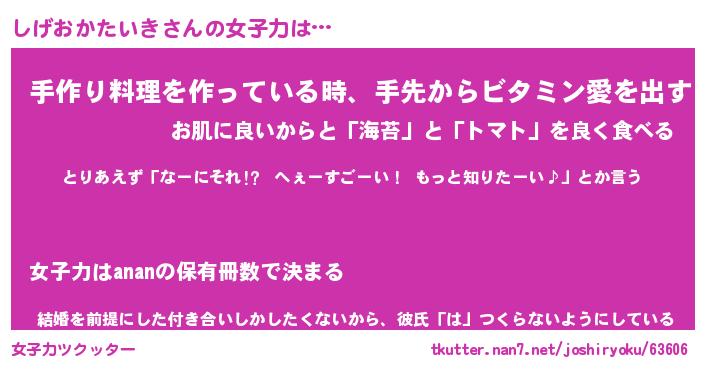 | 肩書あだ名 | 『しげおかたいき社長』 |