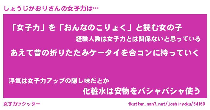| 恥ずかしいあだ名 | 『プリティーしょうじかおり』『しょちん』 |