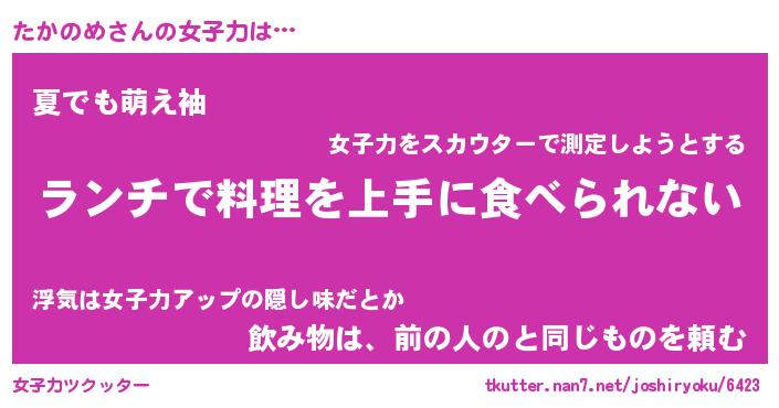 | 意味不明あだ名 | 『ペロリンたかのめ』『永久保存たかのめ』 |