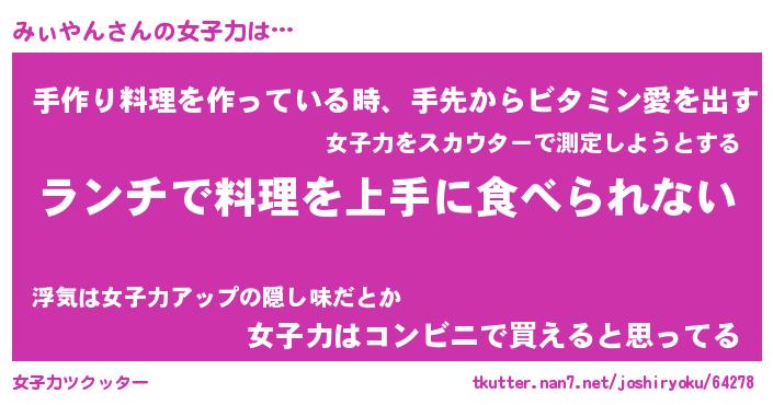 | ヘコむあだ名 | 『みぃもー』『牛乳』『みぃっぺ』 |
