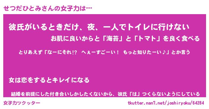 | 恥ずかしいあだ名 | 『プリティーせつだひとみ』『せつっちょ』 |