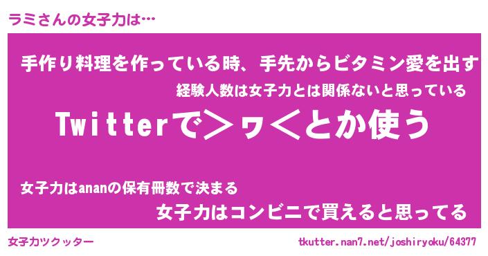 | ヘコむあだ名 | 『ラミにー』『つくし』『ラミっ子』 |