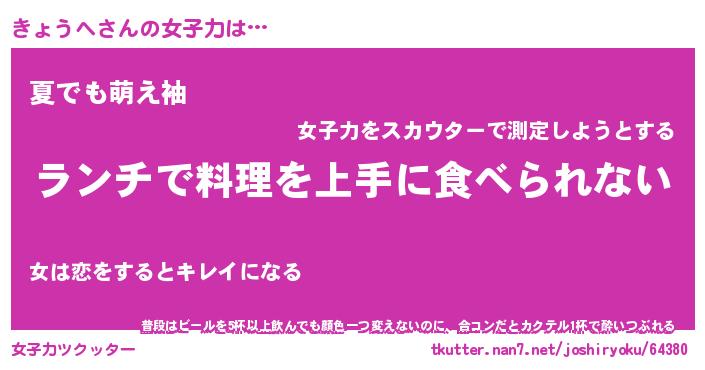 | ヘコむあだ名 | 『きょふぇ~』『牛乳』『きょを』 |