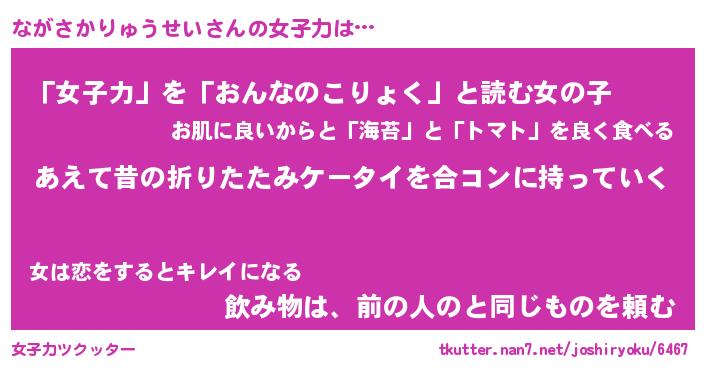 | ツイッター | ながさかりゅうせいさんのツイッターID『renkon_nyan』 |