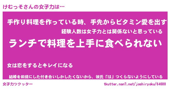 | ヘコむあだ名 | 『けむにー』『牛乳』『けむぷりん』 |