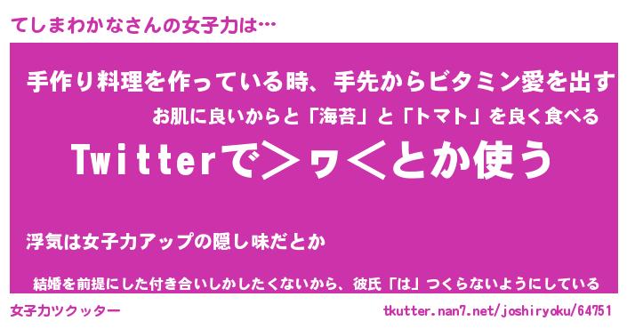 | ヒーロー風カッコイイあだ名 | 『スーパーテシマワカナ』『暗黒騎士テシ』 |