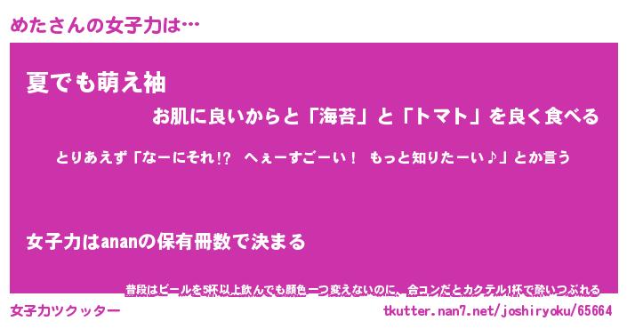 | ヘコむあだ名 | 『めたにー』『酢こんぶ』『めたを』 |