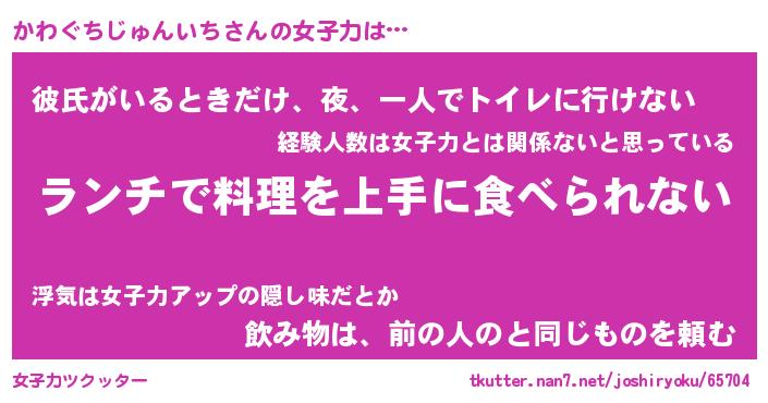 | 女子向けラノベタイトル風あだ名 | 『誰かこのかわぐちじゅんいちを説明してください! ~契約から始まるウェディング~』 |