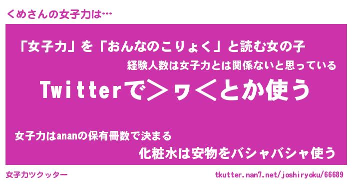 | ヘコむあだ名 | 『くめにゅー』『豆乳』『くめっ子』 |