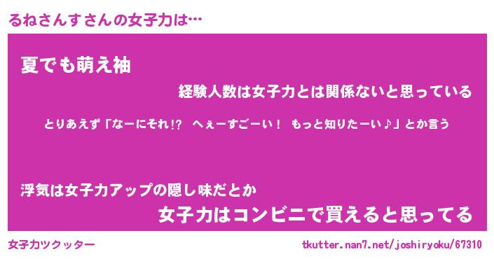 | ヘコむあだ名 | 『るねにー』『豆乳』『るねぷりん』 |
