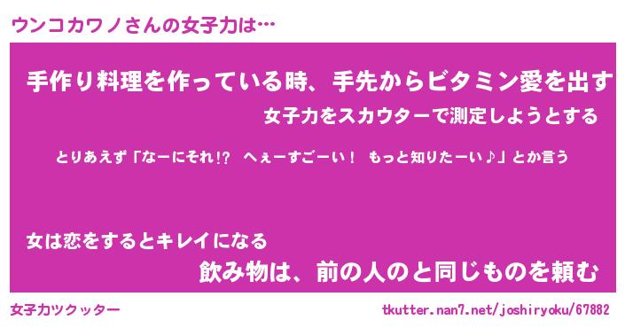 | 男性向けラノベタイトル風あだ名 | 『ウンコカワノアートオンライン』 |