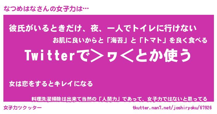 | ファンタジー風あだ名 | 『ナツフェル』『エターナルナツメハナー』 |