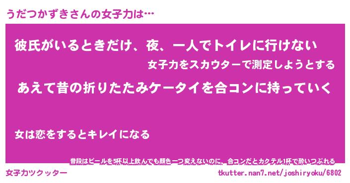 | 男性向けラノベタイトル風あだ名 | 『うだつかずきの憂鬱』 |