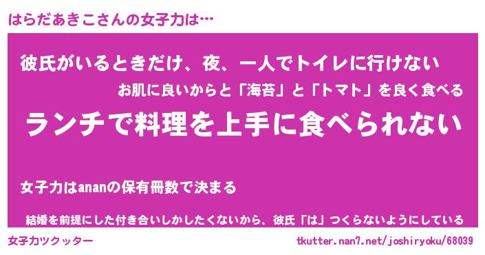 | 肩書あだ名 | 『はらだあきこ社長令嬢』 |
